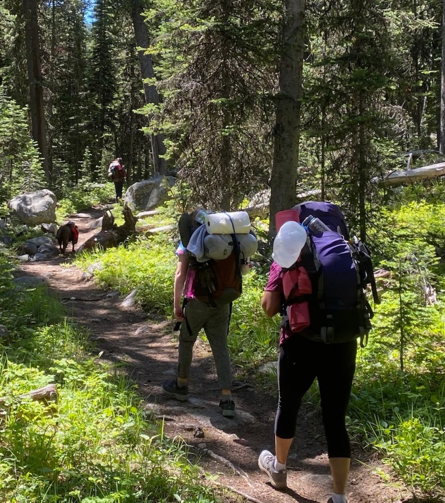 At about 3 miles in, the hike begins to change from easy to difficult with climbing switchbacks and of course the two “bitchers” where you are questioning your sanity… Why did I pack all this stuff, why am I making my kids do this, what were we thinking, why did we spend a small fortune on all this light gear, none of it matters we are too old for this crap…At 6 miles and hours of gradual climbing, our youngest layed down on a cliff face in protest, refusing to go another inch. The accolades were no longer working, she was on to us. We convinced her to just leave her pack behind and Dad will come back for it later. Not ideal, but our only option to get her to move. She stood up and forged on. I grabbed her stuffed pink penguin & sweatshirt from the outside of her pack, cuz I am always a Mom, even though I am currently light headed & about to puke.
