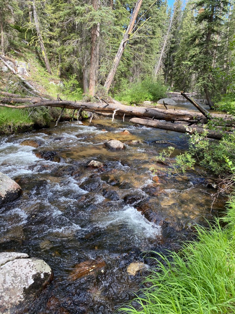The beginning of the hike was uneventful with lush green meadows filled with wildflowers, blooming strawberries, butterflies, magpies, an occasional scampering rock chuck. The tree canopy lined with gorgeous boulders, little streams running everywhere. I haven’t been back to this place since we started our family 17 years ago. Although we have spent many summers traversing the surrounding hills with our kids, this hike would prove to be much more difficult in more ways than one. Walking along, my mind was flooded with warm memories of a simpler time with my hubby, senses filled with the smell of ponderosa pine and my soul at peace.
