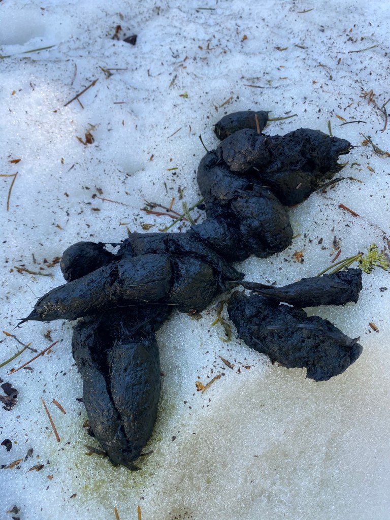 We crested the ridge with a glorious view of Mt Tahepia around 5pm and all of the sudden my achy body goes limp with relief. Making our way around the lake, we noticed it was very high with glacial run off, filling the borders, creating small estuarys and plenty of snow for storing a few liquid medicinals. We crossed through the horse camp, traversed the ridge and noticed some large animal scat that we quickly examined, looking fairly fresh with small hairs. Possibly a lone wolf passing through, no biggy and continued on. Finally setting up camp, rehydrating, celebrating & covering ourselves in bug spray, as the thawing landscape gives way to intense mosquitos this time of year. Our bodies exhausted, we enjoyed an evening under the stars with a perfect view of the Milky Way, rarely seen!
