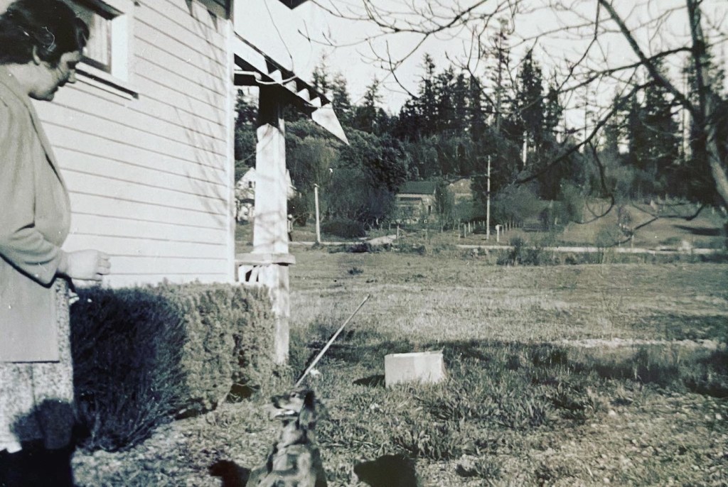 I begin to ask her questions about a simpler time. Snuggling a family photo album on her lap, a very private person, timid in her response. We talk about her grandfather & his brother settling a combined 30 acres together, where they would eventually raise their families. Building 2 boat houses near the beach, sharing the space with the local native Americans who would come to fish each summer. As Mary explains. Beaches were not “owned” by anyone back then. She recalls rowing her mother out into the Bay after school to catch salmon for supper. Now only accessible via a long trek down the ravine, through thick brambles reaching over 10 feet in height. A treacherous, scratchy, muddy hike, our own family has only been able to navigate once in our 16 years here.