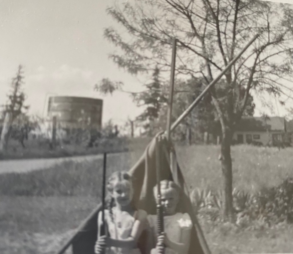 Mary & her sister playing. The same water cistern with uncles home in background