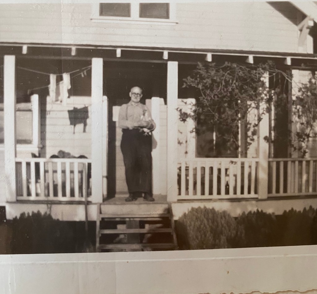 Oswald Hansen on the back porch before it was closed in. Circa 1950s