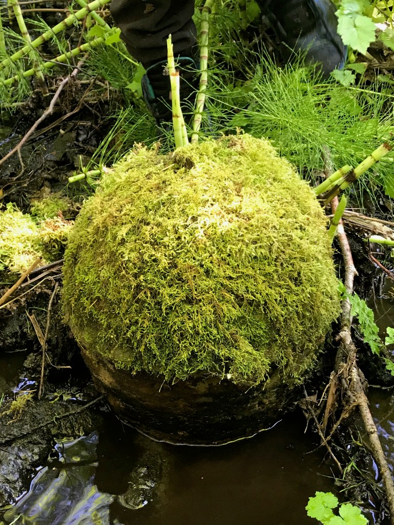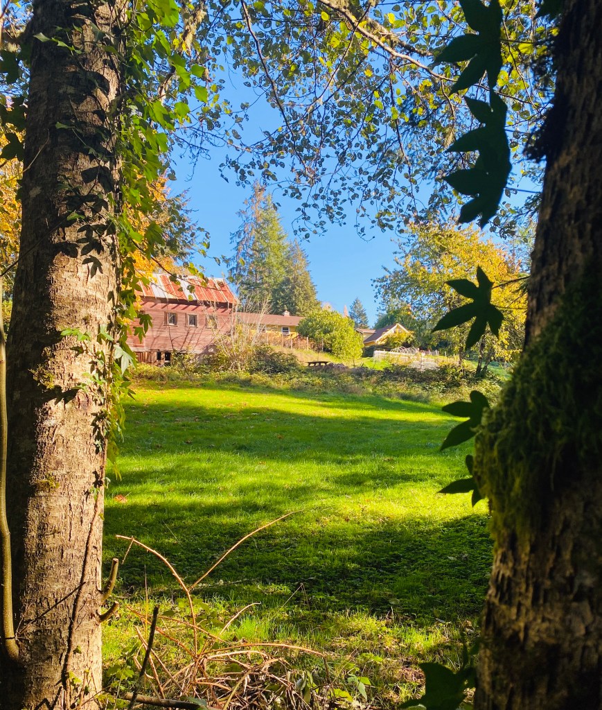 The original property that Mary affectionately refers to as “Heritage Place” included the cove at the end of the creek, used as their only source of water. Now 100 years later, the creek crossing several properties, water rights long forgotten, as deep wells were dug in the 70s. Salmon no longer navigate this stream, while most of the creek bed is choked out by erosion, noxious weeds of horsetail, evergreen blackberry & ivy. Some native salmon berry and devils club still peek through the thicket. The original ram still there, covered in moss used for pumping water up to the farm. (A hydraulic ram is a cyclic pump powered by hydropower. The device uses the hammer effect to develop pressure that allows the water that powers the pump to be raised to a point higher than where the water source originally runs).