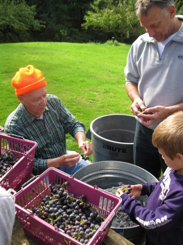 She speaks fondly about family gatherings at the farm. Every fall, the extended relatives would come to help harvest grapes & press cider on their giant, hand built apple press. While her Mother, Edna would bake homemade donuts to share with all who labored. So much to get done, while many hands make light work. We have adopted some of the same traditions, hosting our annual grape harvest with family every October. Cows grazing on the back pasture, just below the barn were used for milk, while hundreds of chickens and small poultry houses dot the landscape. The field in front used primarily for hay. Buckets of Island Belle Grapes filling the old farm truck to be driven to a winery on Stretch Island each season.